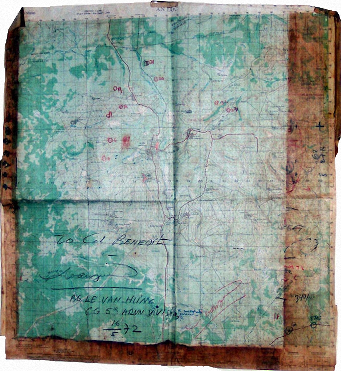 Bản đồ hành quân của cố Thiếu Tướng Lê Văn Hưng với chữ ký và thủ bút