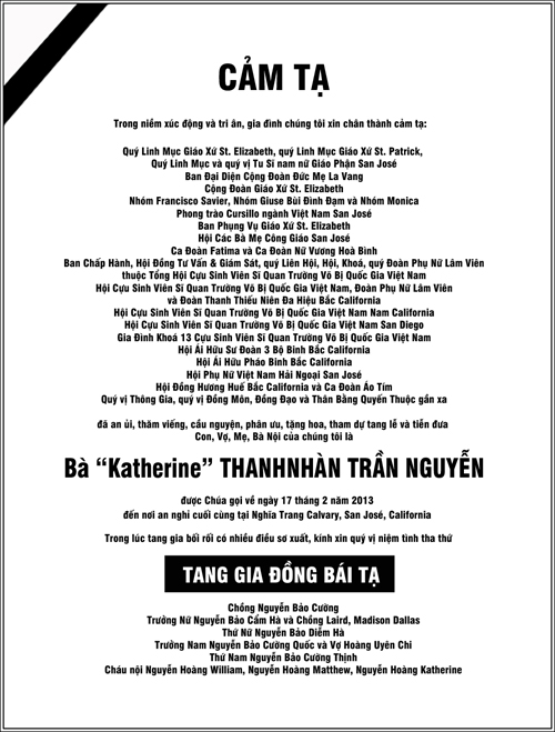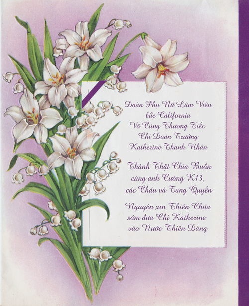 Trang chủ » Hội Võ Bị Bắc Cali » Thương Tiếc Chị Thanh Nhàn