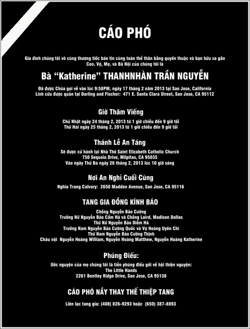 Mời click để xem: MỘT SỐ HÌNH ẢNH TANG LỄ ÔNG PHẠM ĐÔNG AN K25 TẠI SAN JOSE