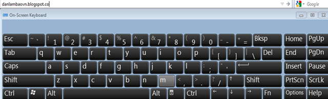 Lúc này bàn phím ảo sẽ hiện ra, bạn sẽ di chuyển chuột vào những kí tự trên đó để gõ thay bàn phím thật. Với những kí tự nào phải giữ phím “Shift” thì bạn kết hợp dùng phím Shift trên bàn phím thật để thao tác.