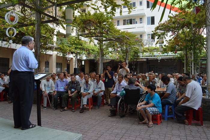 Ông Hoàng Văn Phong cám ơn: “Đây là dịp anh em lính VNCH chúng tôi có dịp quy tụ lại với nhau. Chúng tôi chân thành cảm ơn Quý cha DCCT và các mạnh thường quân đã cho chúng tôi buổi giao lưu rất là ý nghĩa này. Trong cuộc chiến nào cũng có thương tật dù là lính VNCH hay lính Cộng sản trong một thời cuộc bị chia đôi đất nước. Mong muốn chính quyền này đừng phân biệt [đối xử] chúng tôi bởi vì chúng ta là người VN.”