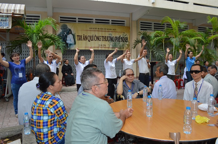VRNs (28.4.2014) – Sài Gòn – Vào lúc 8 giờ, ngày 28.04.2014, Giáo xứ Đức Mẹ Hằng Cứu Giúp và Tu viện DCCT Sài Gòn (38 Kỳ Đồng, Quận 3 – Sài Gòn) đã tổ chức ngày “Tri Ân Quý Thương Phế Binh Việt Nam Cộng Hòa” cho khoảng 440 (danh sách chính thức 421) thương phế binh (TPB) VNCH.