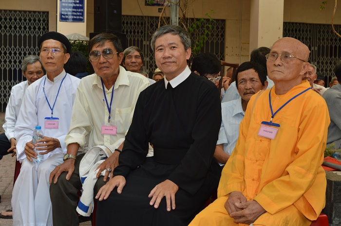 Cha Giuse Hồ Đắc Tâm, Bề trên Tu viện, kiêm chánh xứ Gx. Đức Mẹ HCG Sài Gòn ngồi cùng với một số chức sắc tôn giáo bạn