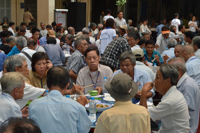 Quý ông thương phế binh dùng cơm trưa với nhau