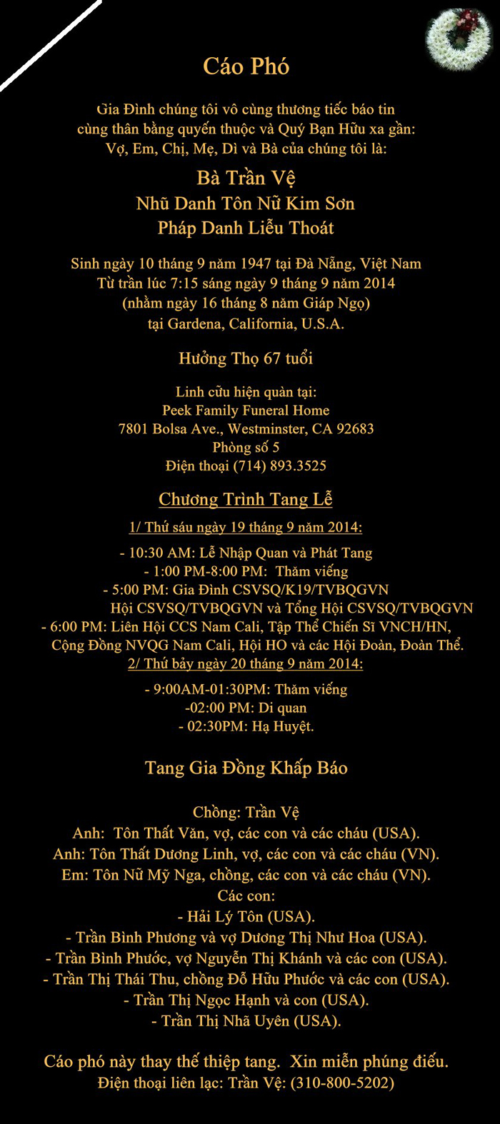 Mời click để xem: MỘT SỐ HÌNH ẢNH TANG LỄ ÔNG PHẠM ĐÔNG AN K25 TẠI SAN JOSE