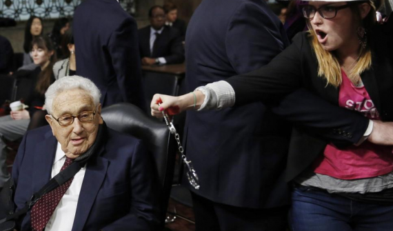 Những thành viên của nhóm hòa bình CODEPINK đã giương khẩu hiệu, gọi Henry Kissinger là tội phạm chiến tranh. Một người đã tiến tới gần Henry Kissinger và giơ chiếc còng số 8 vào mặt ông ta. Mặc dù bị áp giải ra khỏi nghị trường ngay sau đó, nhưng nhóm hoạt động CodePink nói rằng họ thực sự tự hào về hành động của mình tại Thượng viện ngày 29 tháng 1, 2015, vì đã thay mặt cho nhân dân Đông Dương, Trung Quốc, Đông Timor và nhân dân yêu chuộng hòa bình ở khắp mọi nơi, nói vào mặt của Henry Kissinger về tội ác của ông ta. Medea Benjamin, người đồng sáng lập tổ chức CodePink nói rằng “Henry Kissinger phải chịu trách nhiệm cho cái chết của hàng triệu người. Ông ta là một kẻ sát nhân, một kẻ nói dối, một kẻ lừa đảo, và là một kẻ côn đồ. Ông ta cần phải được đưa ra trước vành móng ngựa tại Hague.”