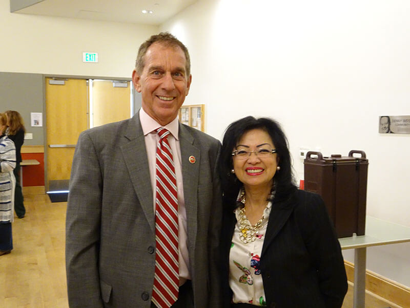 Nghị Sĩ Bob Wieckowski và Chị Vân Lan tại một buổi sinh hoạt cộng đồng