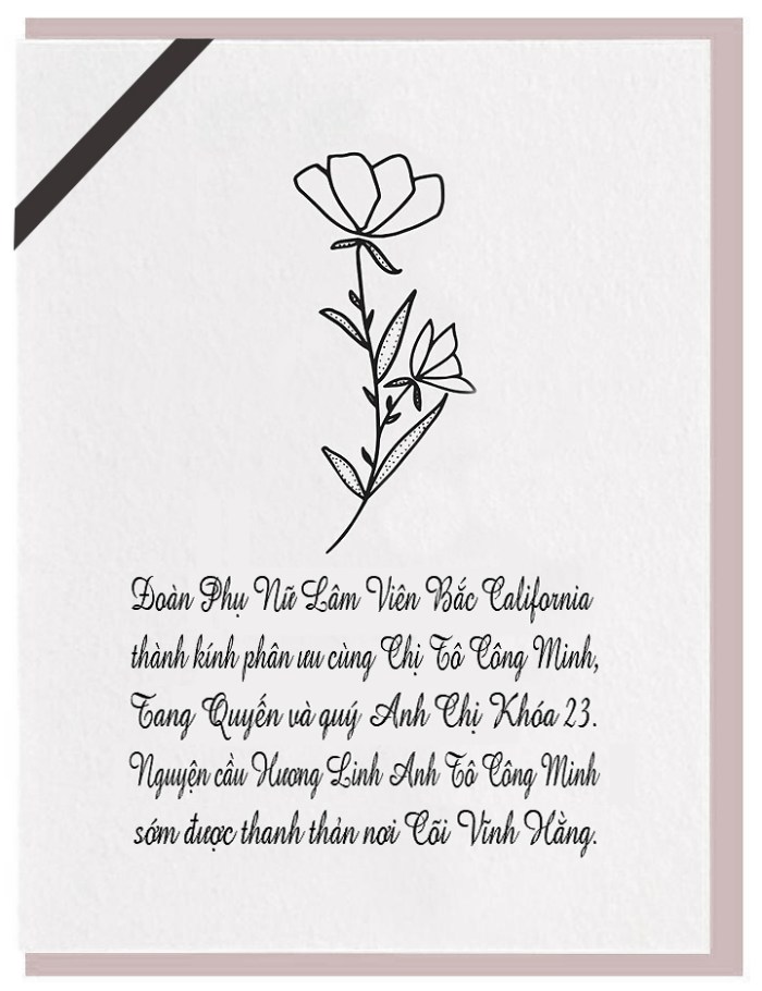 Trang chủ » Việt Nam Cộng Hoà » Quê Hương và Tổ Quốc » Sinh Hoạt » Phân Ưu cùng Chị Tô Công Minh K23/1
