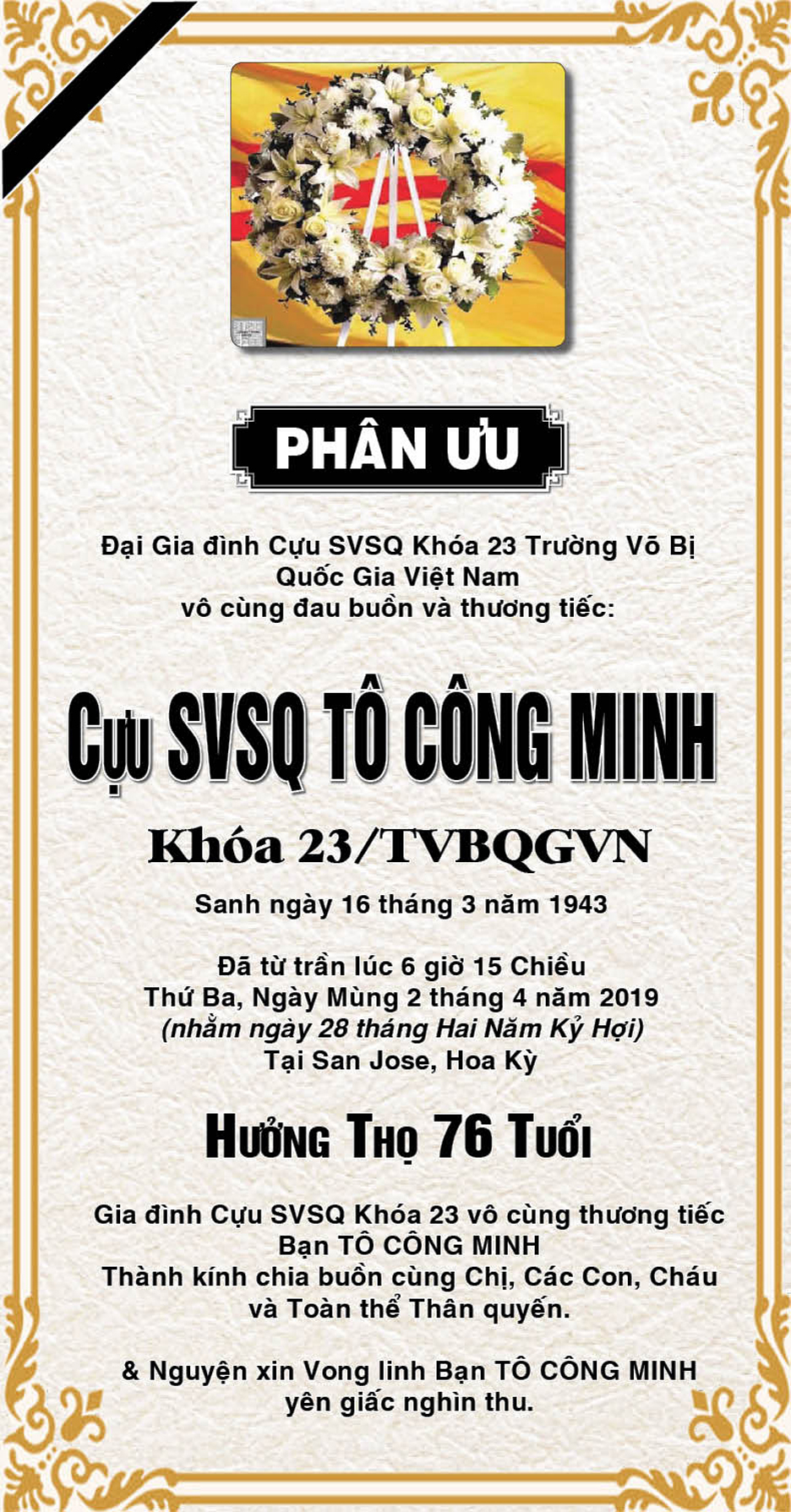 - Phân Ưu Ông Hoàng Trọng Đức K27