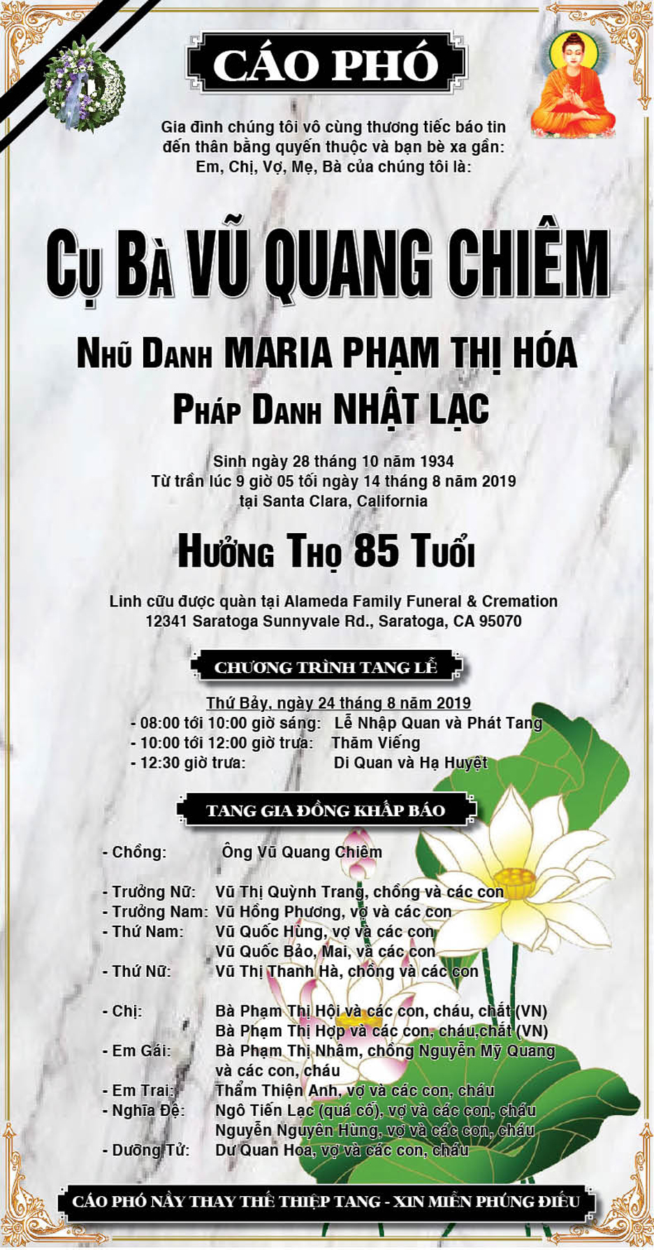 Mời click để xem: MỘT SỐ HÌNH ẢNH TANG LỄ ÔNG PHẠM ĐÔNG AN K25 TẠI SAN JOSE