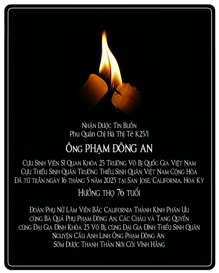 Mời click để xem: MỘT SỐ HÌNH ẢNH TANG LỄ ÔNG PHẠM ĐÔNG AN K25 TẠI SAN JOSE