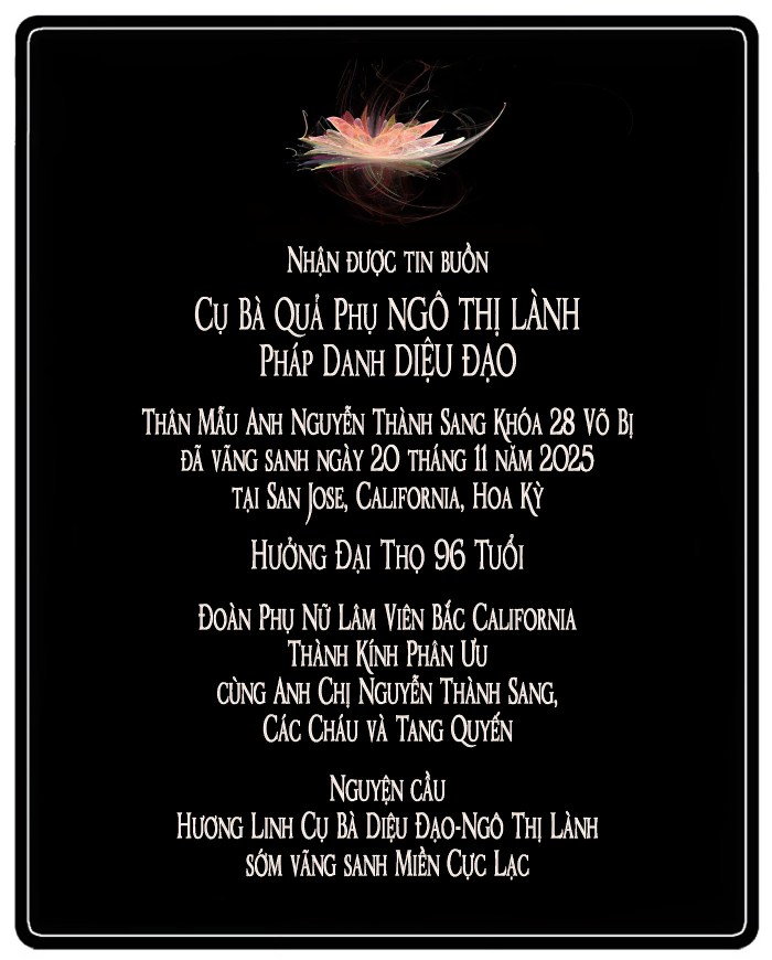 - Phân Ưu Thân Mẫu Ông Nguyễn Thành Sang K28