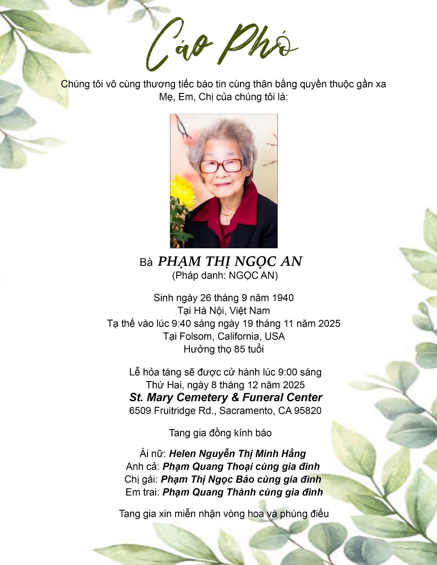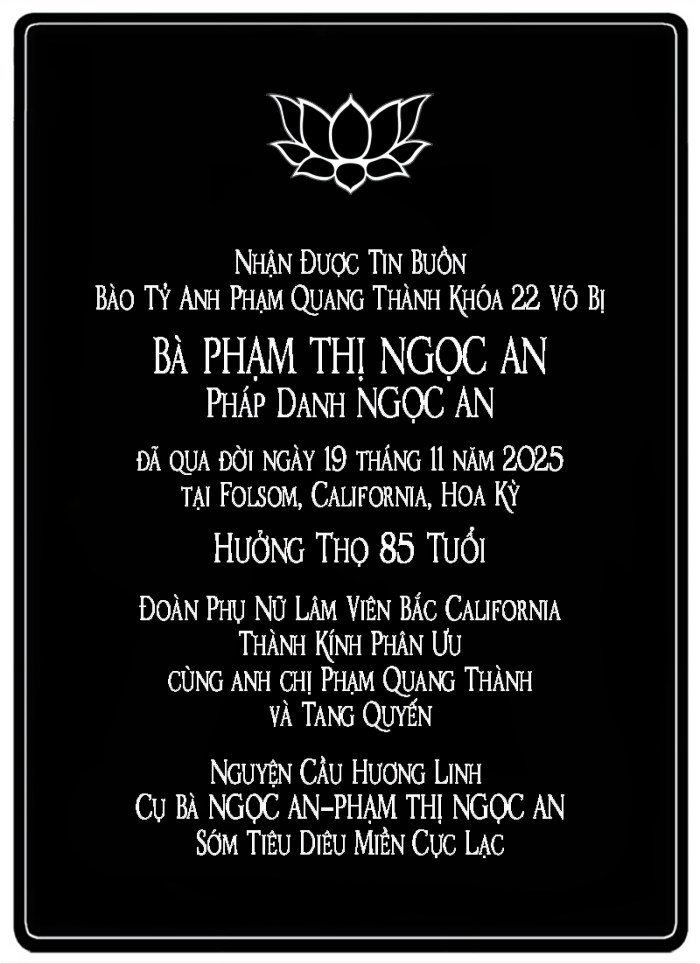 Mời click để xem: MỘT SỐ HÌNH ẢNH TANG LỄ ÔNG PHẠM ĐÔNG AN K25 TẠI SAN JOSE