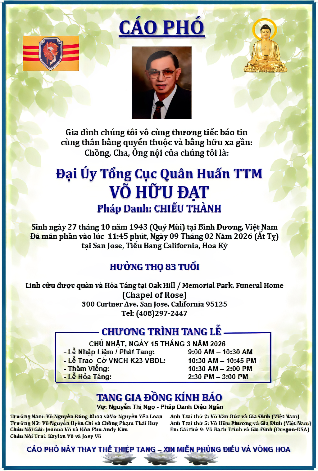 Phân Ưu Ông Võ Hữu Đạt K23