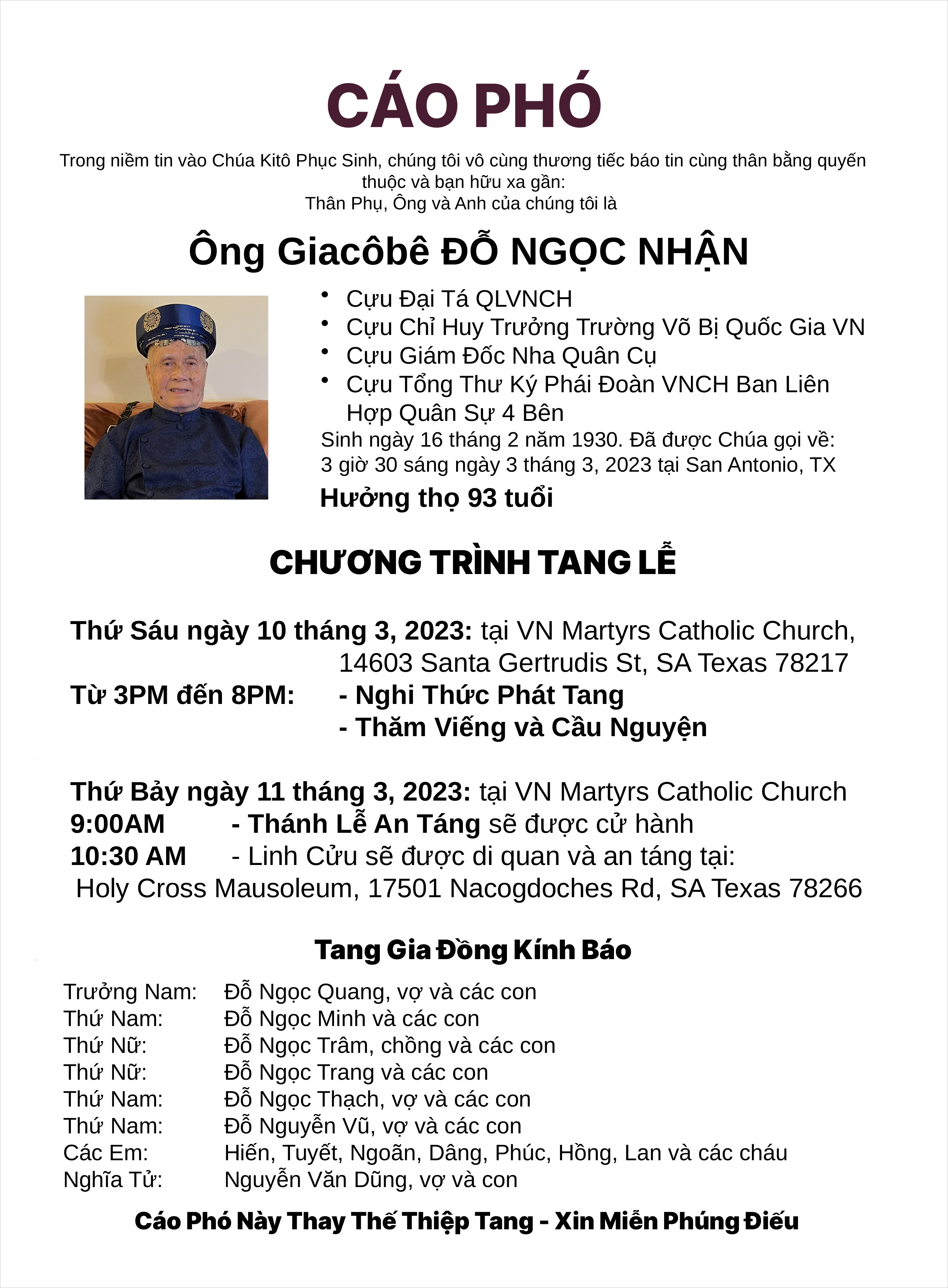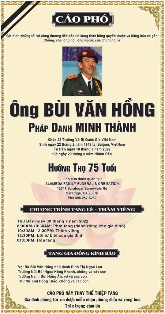 Phân Ưu Cựu Đại Tá Chỉ Huy Trưởng